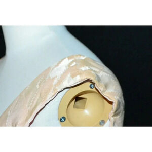 see measurements no true size tag - some discoloration (i do not know if the yellowing will come out) will need to be cleaned