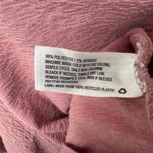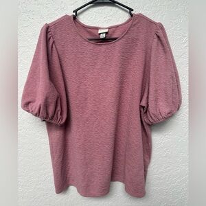 Pink blouse with ribbed / ripple pattern texture and bubble sleeves with elastic at the end. Soft and comfy! Worn and washed a few times but in excellent condition. Perfect with jeans or dressed up with slacks.