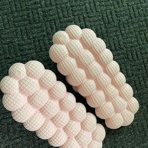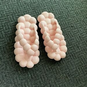 Unique pink bubble slide sandals. Perfect for casual wear.
