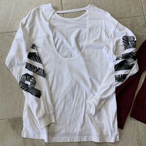White shirt is a large but fits like a medium with open in the back