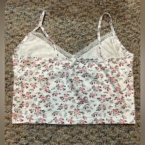 Floral white and pink crop top- Size S/M