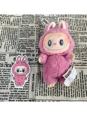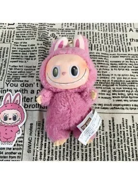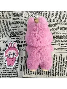 Adorable pink bunny keychain accessory, perfect for adding a playful touch to your bag or keys.