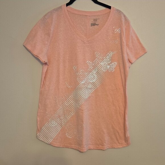 Heathered pink with white butterfly print short sleeve t-shirt