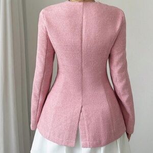 This chic pink blazer offers a sophisticated look for any occasion. Perfect for adding a touch of elegance to your wardrobe.