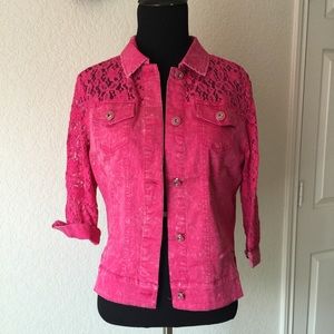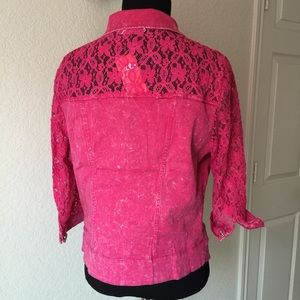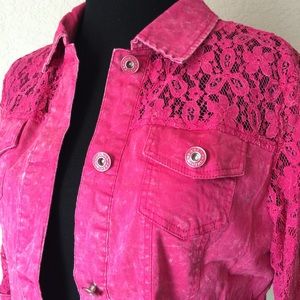 This pink Floral Lace Half Sleeve Buttoned Front Top is super cute and chic. It’s made of 96% cotton and 4% spandex.