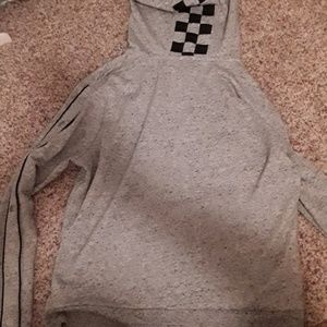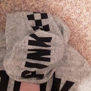 A comfy Pink brand gray jacket with zipper and button/snap details on he sleeves