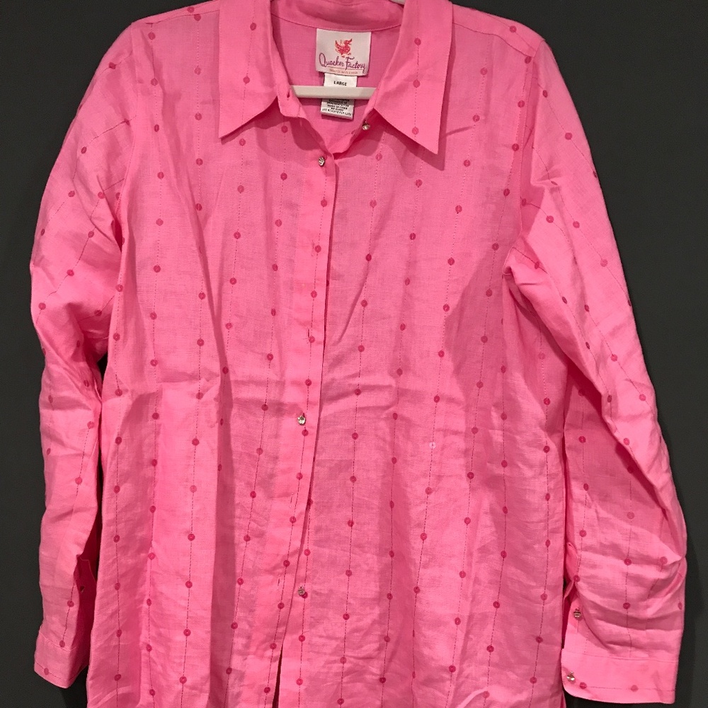 Pink Button Down with Sequins. 100% Linen, 62% Rayon & 38% Polyester.
