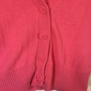 Used pink cardigan. Sleeves to the elbow. Can either wear buttoned up or opened. Great to wear over a dress. In good condition