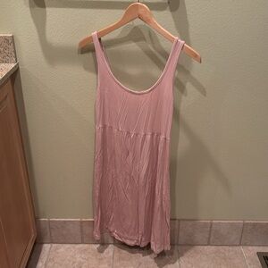 Chic pink sleeveless dress with button-down front. Perfect for casual outings.