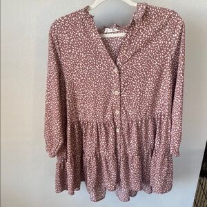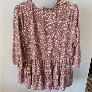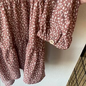 Pink/ mauve colored blouse with a leopard print design