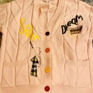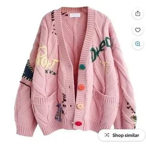 SHEIN cozy and stylish with this pink button-up cardigan with colorful buttons, sewn in patches and two pockets. Perfect for layering and adding a pop of color to your outfit.