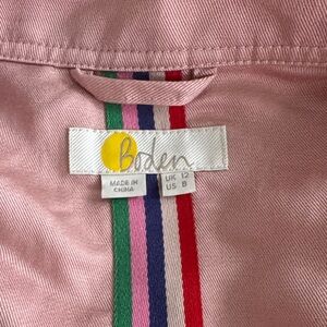 Stylish Boden pink button-up jacket with a classic design. Features a colorful inner stripe detail. Liocell/Linen blend. Never worn. US 8.