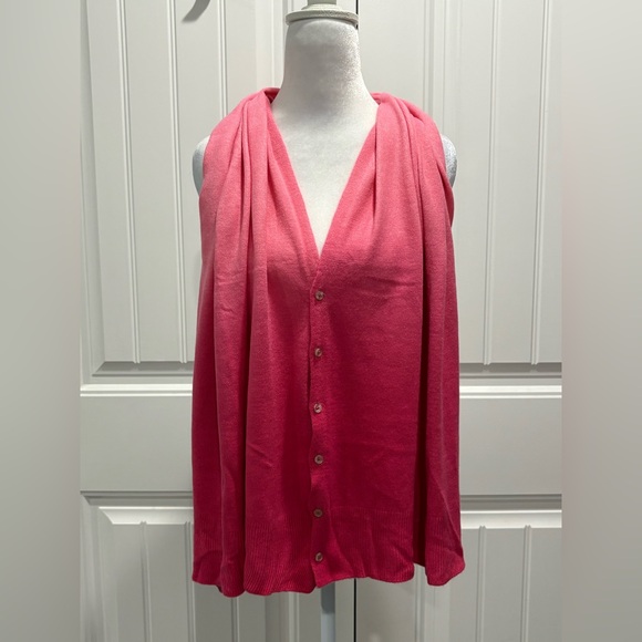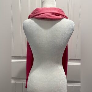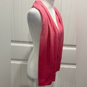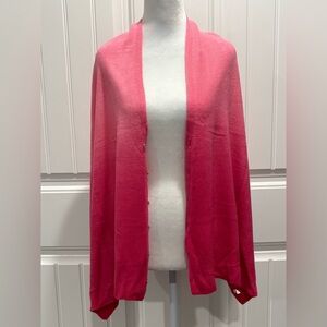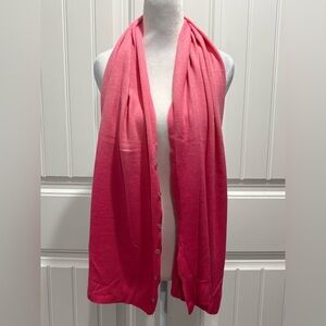 Stylish button-up scarf with a gradient color from hot pink to light pink. Perfect for layering.