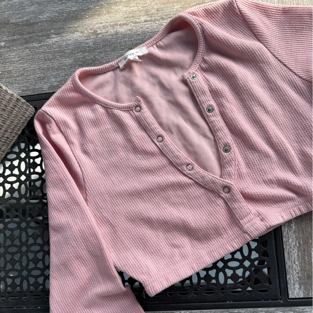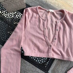 Stylish blush pink button-up cardigan. Perfect for layering. 🤍