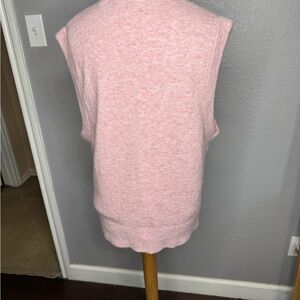 Stylish pink button-up vest with front pockets. Perfect for layering.