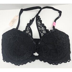 Pink By Victorias Secret Lace Push-Up Size 32DD Black Front Clasp NWT