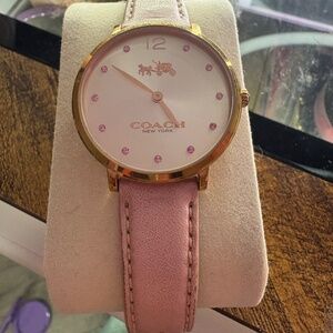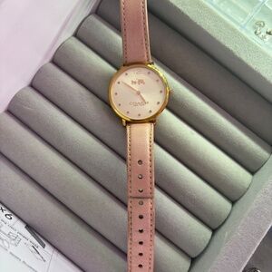 Pink COACH gem watch with leather strap