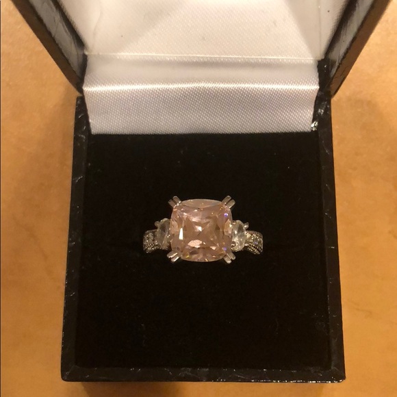 925 sterling silver and CZ ring. Large pink middle stone with 1 clear oval and 3 rounds on each side. Great condition 💍