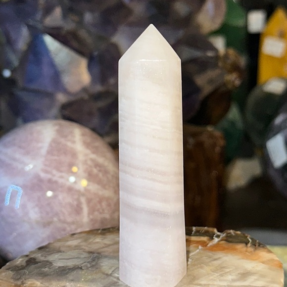 Pink Calcite Crystal Point! It measures 3 5/8” tall.