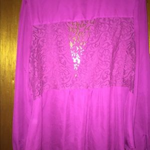 Pink Candies top. Color matches the first picture. Lace back. Button up. Size XL.