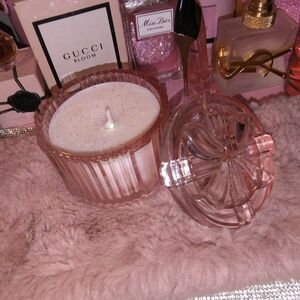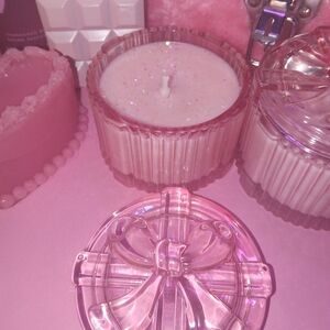 Experience the luxurious sugar cashmere scent .Pink glass bow lid Candle. Perfect for collecting and creating a relaxing atmosphere.