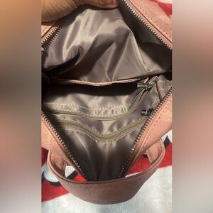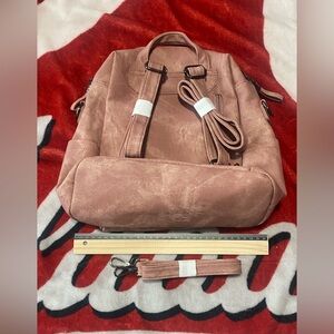 This compact yet spacious backpack is designed for practicality and elegance, making it ideal for your daily adventures. Measurements are estimated from the images provided.