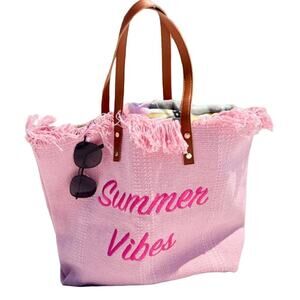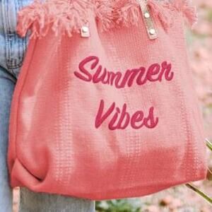 Add a pop of fun to your sunny-day style with this Pink Canvas Fringe Shoulder Bag! Featuring a bold "Summer Vibes" print and playful fringe details, this bag is all about good energy and easygoing charm. The bright pink canvas brings color to any outfit, making it the perfect companion for beach days, festivals, or casual outings. Lightweight and full of personality, this cheerful shoulder bag is a must-have accessory for anyone ready to soak up the season in style.