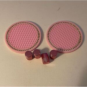 Pink car cup holder coasters with bling and Valve Stem Caps set of 6 NWT