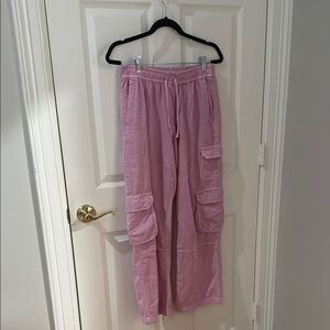 Stylish pink cargo pants with multiple pockets. Perfect for casual wear. Old Navy size small. Light pink color. Stretch was with multiple pockets. Perfect condition. Smoke free home.