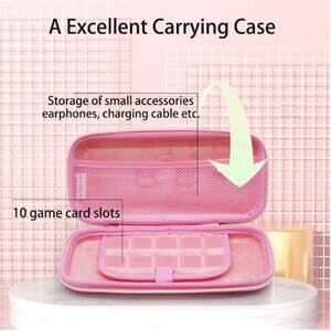 Pink Carrying Case for Nintendo Switch 10 Game Slots Zippered Hard Shell Travel