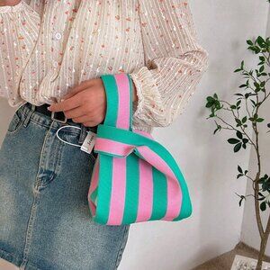 Pink Casual Women's Duke Crochet Stripe Pattern Lattice Handheld Bag