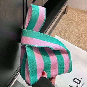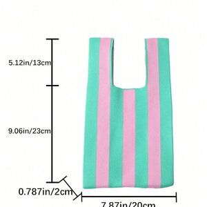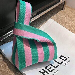 Pink Casual Women's Duke Crochet Stripe Pattern Lattice Handheld Bag