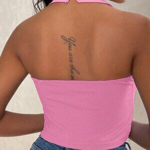 Pink Casual Women's Halter Neck Slim Fit Sexy Camisole