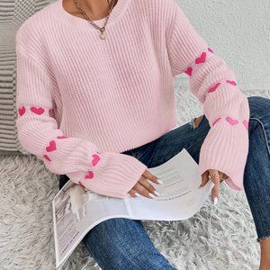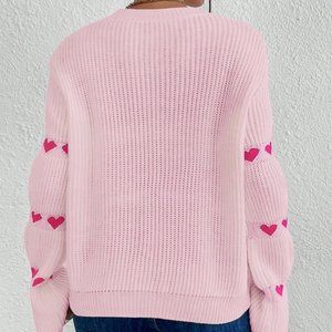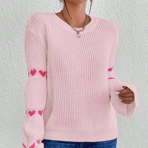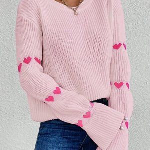 Pink Casual Womens Heart Pattern Flare Sleeve Sweater