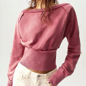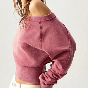 Pink Casual Women's Knitted Long Sleeve Cropped Loose Pullover Sweater