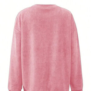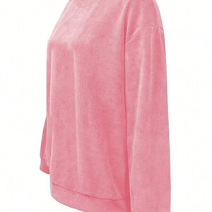 Pink Casual Women's Minimalist Crew Neck Long Sleeve Sweatshirt