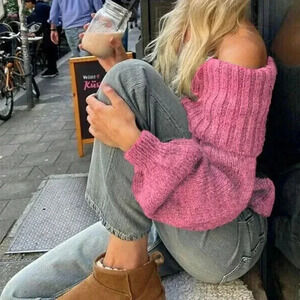 Pink Casual Women's Off-Shoulder Loose Sweater