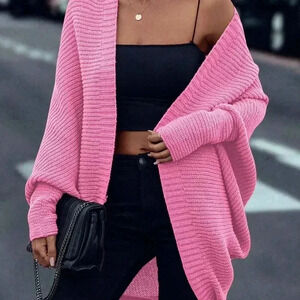 Pink Casual Women's Open Front Batwing Sleeve Cardigan