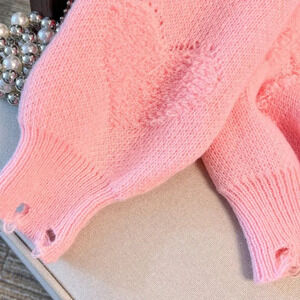 Pink Casual Women's Plus Size Solid Heart Pattern Knitted Sweater