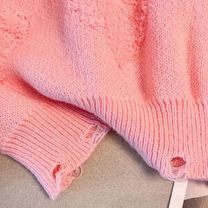 Pink Casual Women's Plus Size Solid Heart Pattern Knitted Sweater