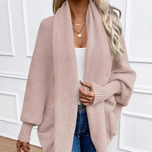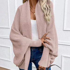 Pink Casual Women's Solid Color Batwing Sleeve Long Sleeve Cardigan
