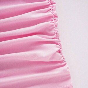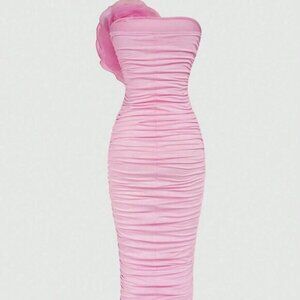 Pink Casual Women's Solid Color Pleated And 3D Flower Decorated Strapless Dress