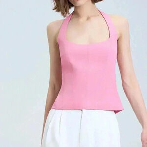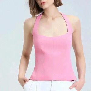 Pink Casual Women's Solid Color Summer Halter Neck Backless Tank Top
