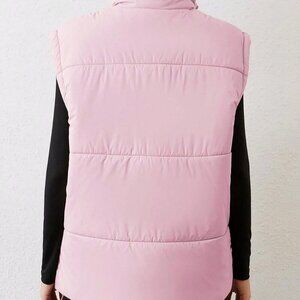 Pink Casual Women's Stand Collar Quilted Sleeveless Puffer Vest Jacket