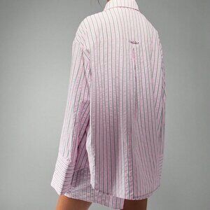Pink Casual Women's Striped Loungewear Button down top & shorts Coord set