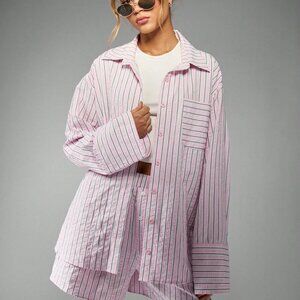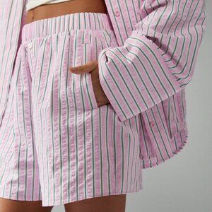 Pink Casual Women's Striped Loungewear Button down top & shorts Coord set