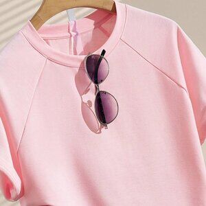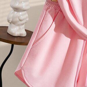 Pink Casual Women's Versatile Shorts & Short Sleeve Top Set