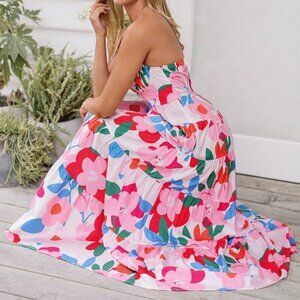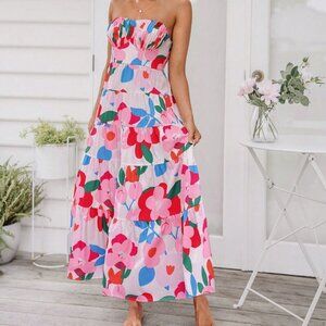 Pink Casual Women's Woven Printed Strap Dress