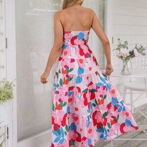 Pink Casual Women's Woven Printed Strap Dress