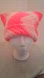 Pink chevron zigzag print cat ear beanie cap. Handmade crocheted in 2 shades of pink. 100% acrylic yarn. Wear the edge cuffed or for a longer look straight.